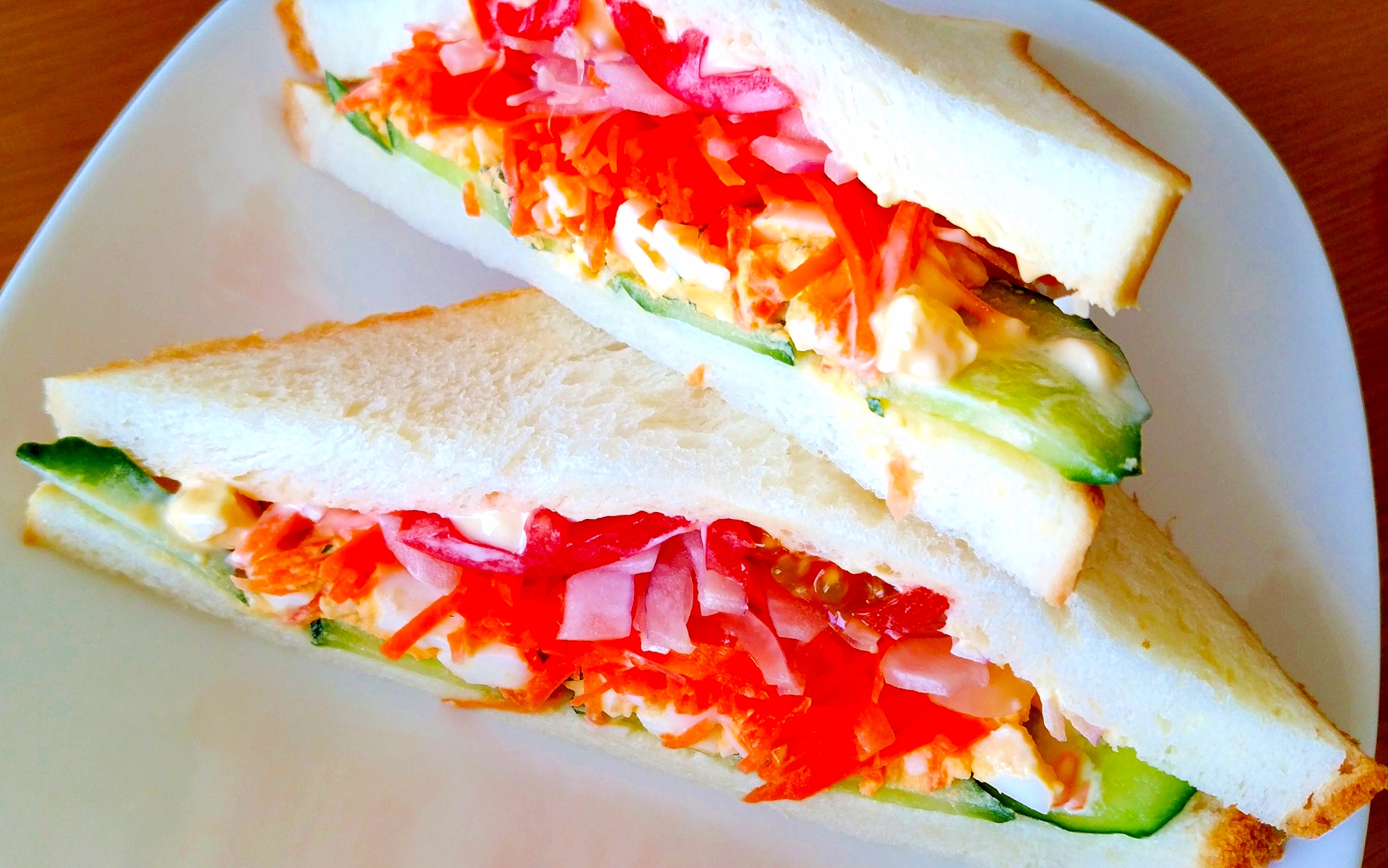 カラフル野菜と卵で ずっしりヘルシーサンドイッチ レシピ 作り方 By Yomogimotir 楽天レシピ
